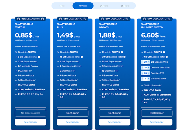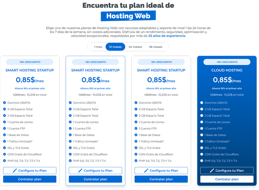 Rediseño de la seccion de precios para contratar Hosting y Cloud Hosting